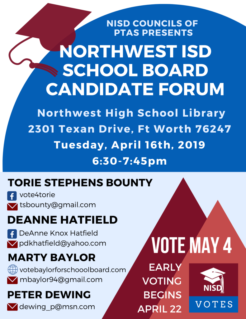 Election Information Flyer for all Campuses & NISD Votes Newsletter, PTA Candidate Forum
